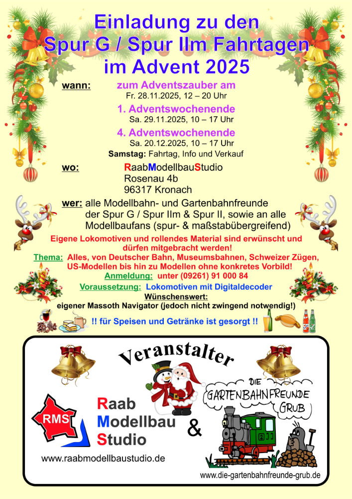 Gleichzeitig macht PIKO Werbung für die Weihnachtslok in Spur G. Das Startset im Weihnachtsdesign kostet 249,00 Euro und hat die Artikelnummer 02412. Wer seine Weihnachtslok bis zum 18. Dezember 2025 bestellt, erhält das Paket nach Angaben von PIKO noch vor den Festtagen.